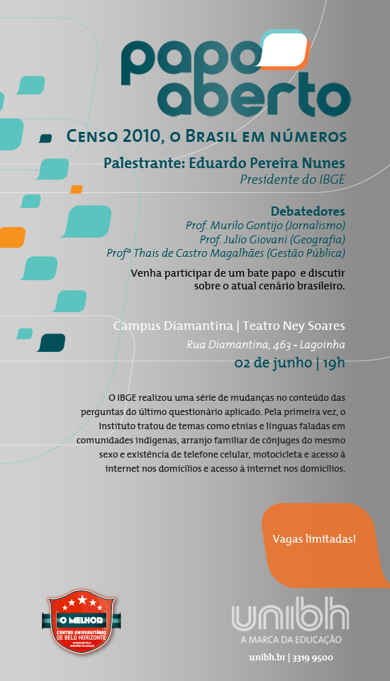 Palestra gratuita no UniBH sobre o Censo 2010: o Brasil em números